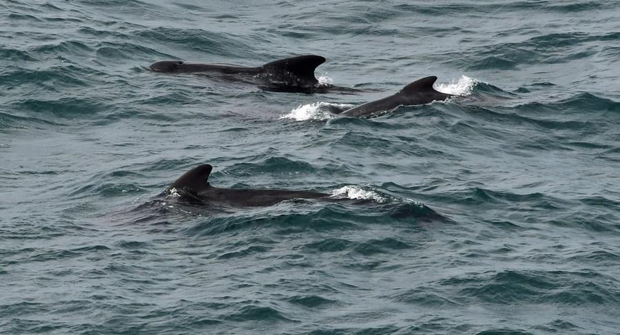 With white-beaked dolphins bouncing across the ocean, and orca carousel feeding whilst teaching their young calf as we headed up to Iceland, the variety of wildlife was astonishing. We also had humpbacks greet us at every port in Greenland and a symphony of large baleen whales blowing along the horizon as we left. One of my favourite sightings was getting to witness the sea erupt with a huge mixed pod of long-finned pilot whales and Atlantic white-sided dolphins racing across the Atlantic.