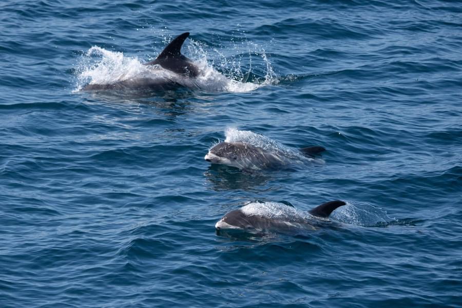 In contrast to the harbour purpose, these are the life of the party! Bursting through the waves in high-energy pods, white-beaked dolphins are fast, flashy, and frankly, fabulous. They are cold water specialists and love the productive waters around Scotland all the way down the east coast of England. Contrary to their name they don’t always have a white beak…but we can also ID them with their beautiful white blaze across their flank. Weighing up to 350 kg so when they show up to splash - you know about it!