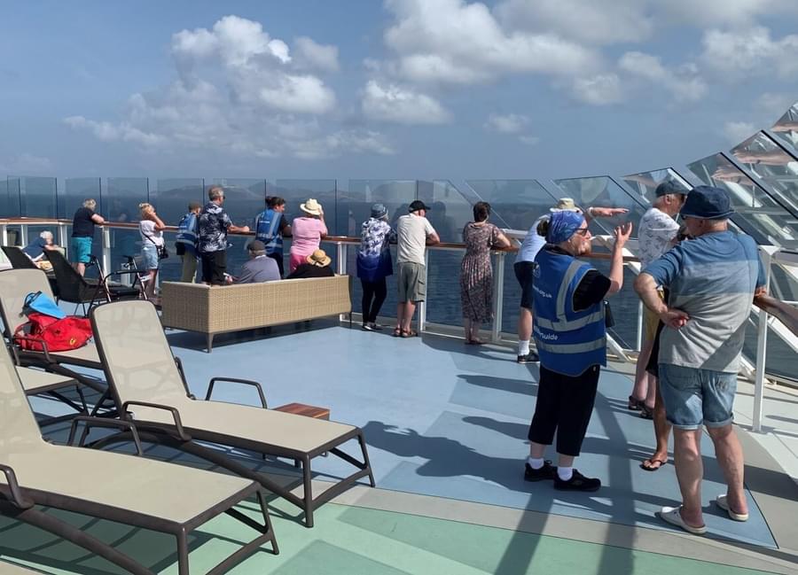 Whilst the ship was anchored for a tender port call in Nevis the ORCA Team provided guests with a stationary deck watch for those not going ashore. Guests had the opportunity to ask the team more about ORCA's work and any other questions about the wildlife encountered so far on the trip.