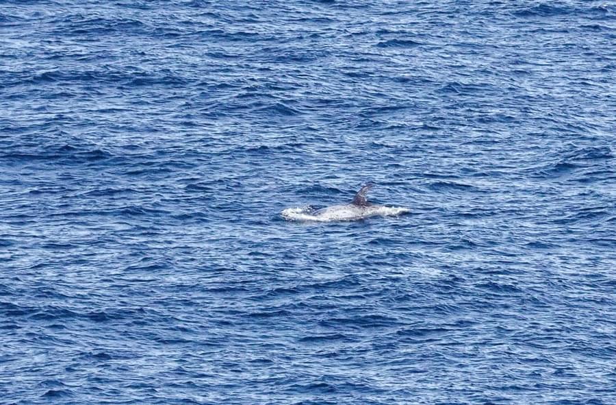 The first cetacean recorded was a Sowerby’s beaked whale, which was seen breaching in front of the ship. These whales along with other species of beaked whales are very rarely seen at sea so this was a great sighting for Saga guests and the ORCA Team. A solitary Risso’s dolphin was also seen, along with small pods of both common and striped dolphins and a distant whale, probably a sperm whale.