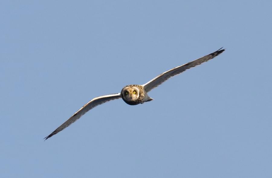 Sightings continued of sperm whales, and fin whales. The team also saw a small pod of common dolphins, and another pod of pilot whales. Continuing to sail west, about a day away from Tenerife, a large plume of dust from the Sahara Desert blew over the Atlantic affecting visibility and the ORCA Teams ability to accurately record whales and dolphins. This often happens in the winter months and is known on the Canaries as La Calima. The ORCA Team and guests continued to survey for cetaceans out on deck when they could and were rewarded with the first Atlantic spotted dolphins of the trip, along with a short-eared owl which everyone was surprised yet delighted to see.