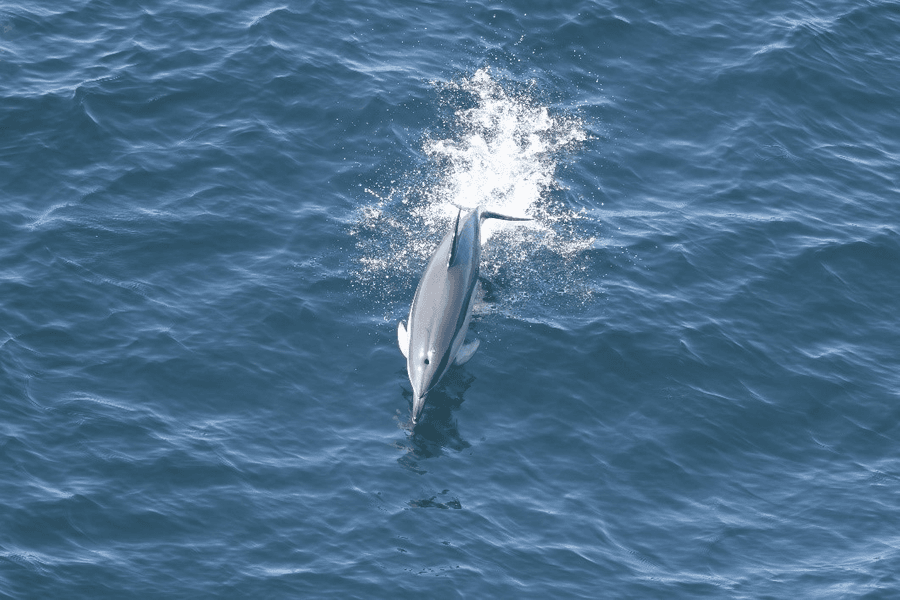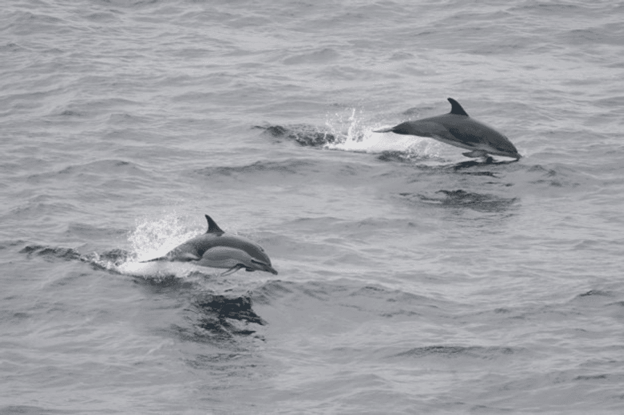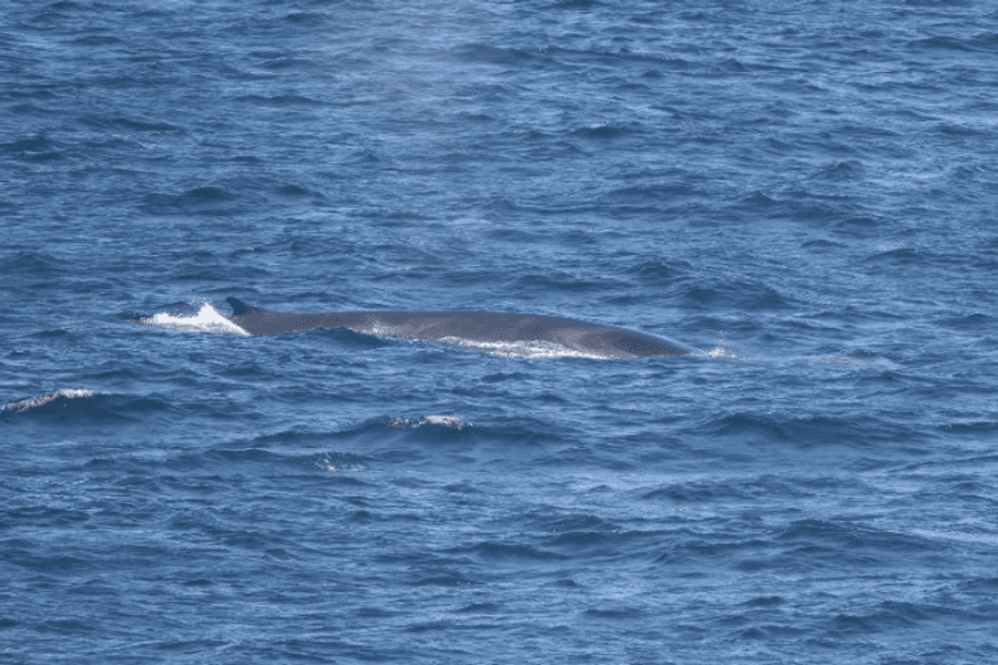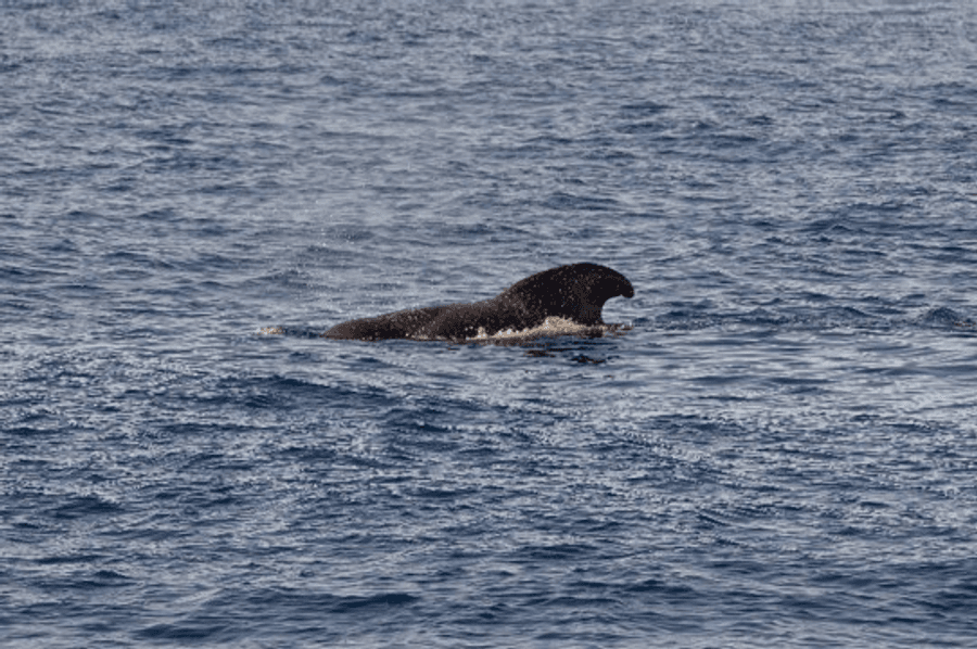 As well as distant sightings the team and guests were also getting amazing views of whales close to the ship. Guests were delighted to see fin whales, humpback whales, and minke whales, as well as common dolphins including a good view of a melanistic individual. This unusual colouration is caused by a gene mutation which increases the concentration of melanin in the dolphin, and is observed in a wide variety of species. Tuna were also spotted, leaping clear of the water. The team were thrilled to be joined on deck by so many keen wildlife watchers, with many guests rushing over at each shout of “sighting”!