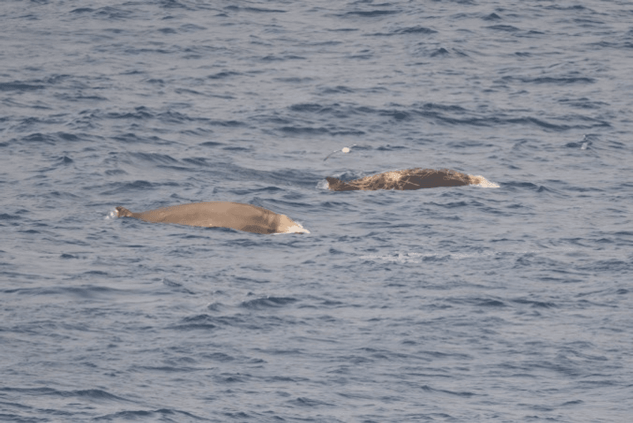 As they travelled further across the Atlantic the variety of species recorded increased. Some of the deep diving cetaceans were recorded including sperm whales, Cuvier’s beaked whales, and other unidentified beaked whales.
