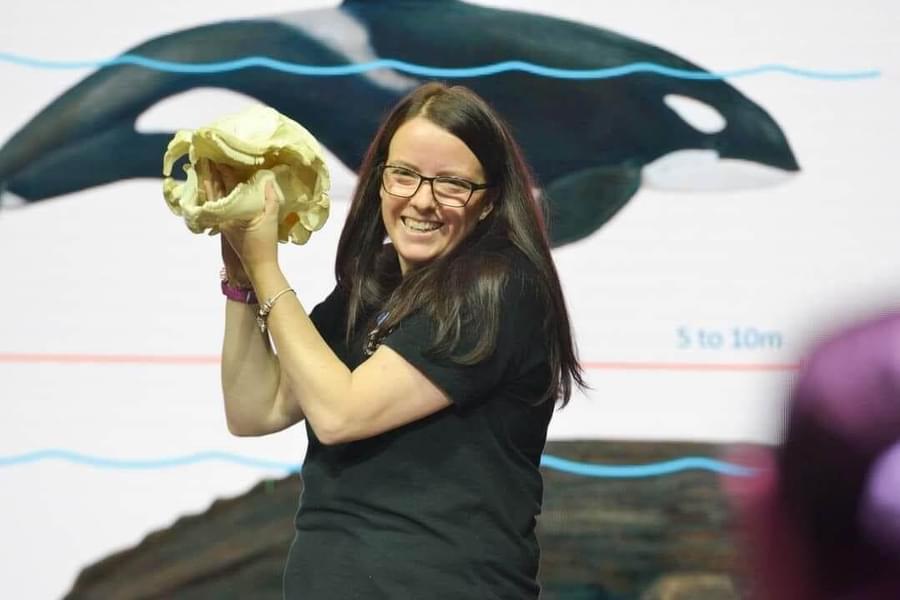 MS Ambience has a fantastic Partnership lounge, which houses an impressive range of cetacean artefacts such as bone clones and information about ORCA and our work. These replicas included a killer whale, bottlenose dolphin, common dolphin and harbour porpoise skull along with several other fascinating pieces. ‘Seaweed’ the life size common dolphin replica also calls the Partnership lounge home and came out for the guests to interact with during lectures and workshops. Everyone enjoyed getting the chance to have photos (and of course a few selfies) with Seaweed. Even adults were keen to get up-close to the skulls to really see the differences between them, especially their teeth and size.