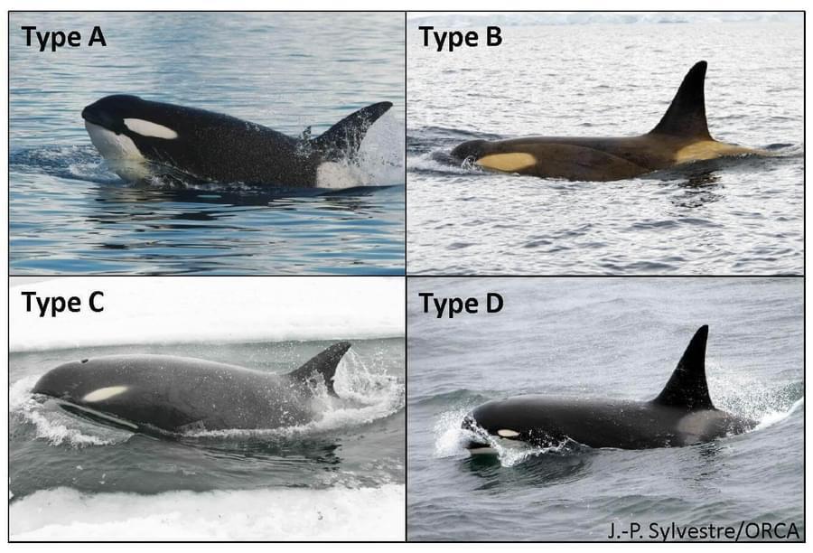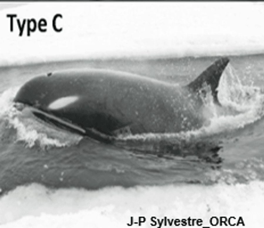 Although currently recognised as one single species, there have been ~10 different killer whale ecotypes described so far, with some so different from each other that scientists suggest they should even be considered different species. An ecotype can be roughly defined as ‘variants of a species adapted to distinct environments’ (1,2) . In the Southern Ocean alone, there are five different killer whale ecotypes which differ in terms of their physical appearance, genetics, habitat preferences, social structures, prey specialisation, and vocal repertoires. These ecotypes are known as: Antarctic Type A, Type B (there are two forms: Pack ice Type B large form, and Gerlache Type B small form), Ross Sea Type C and Sub-Antarctic Type D (3).