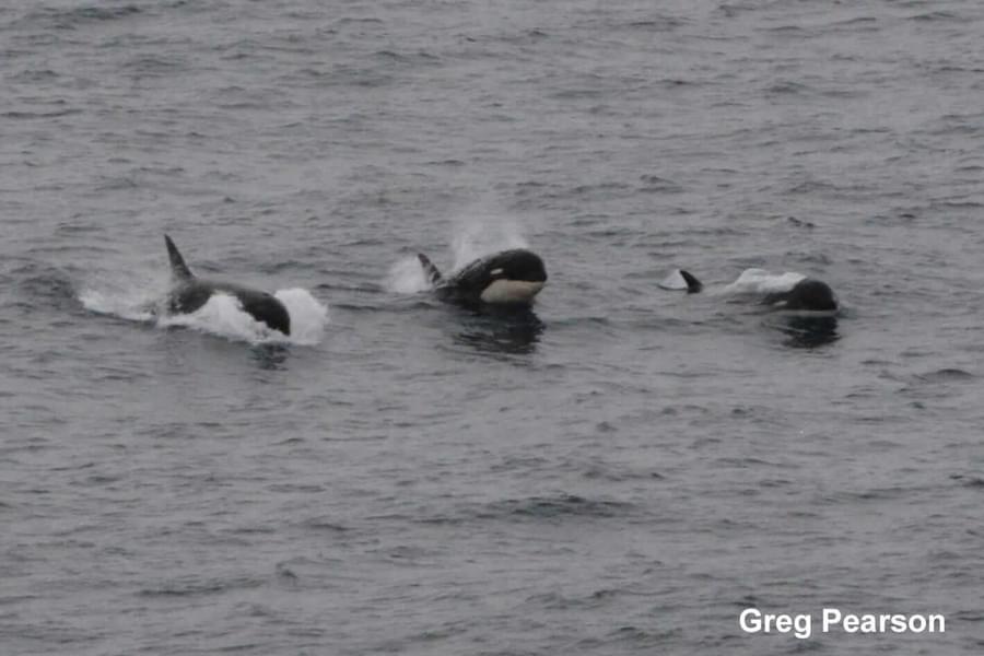 There are dramatic differences in the physical appearance of the Sub-Antarctic Type D killer whales compared to the other ecotypes (7). The eye patch is tiny and is the smallest of any killer whale ecotype. The forehead is very bulbous, and in some cases their head shape almost resembles that of a pilot whale (Globicephala spp) (8). Another visible difference is the shape of the male’s dorsal fin. Other ecotypes have a straight, pointed shape whereas this ecotype has a swept back appearance. There have been no reports of Type D killer whales having the yellow/brown tint seen in some of the other Antarctic ecotypes (7). It is thought that Type D killer whales feed on fish such as Patagonian toothfish (Dissostichus eleginoides) as they have been seen interacting with toothfish long-liners, but not much else is known about their diet (8,9). Once again, this ecotype has a preference for offshore waters of the Southern Ocean, and studying them is very challenging. There have only been a handful of sightings, however guests on Albatros’ Ocean Victory were lucky enough to sight them in November 2023 (see image taken by Greg Pearson). It was a mass stranding event in New Zealand enabled researchers to identify these killer whales as a distinct ecotype. A recent genetic study found that Type D killer whales are one of the most inbred mammals ever recorded, and it appears that they do not breed with other killer whale ecotypes which could provide evidence for classifying them as a different species sometime in the future. (8) However, in common with most killer whales, Type D’s are so rarely sighted, much of their behaviour remains a total mystery!