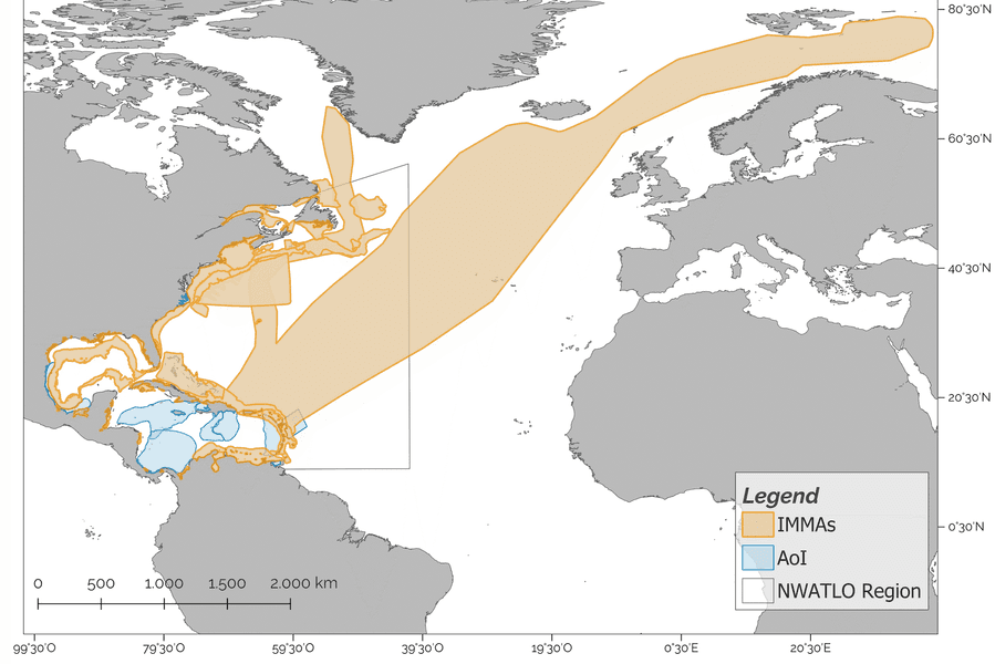 43 new Important Marine Mammal Areas (IMMAs) have been approved and placed on the map in the North West Atlantic Ocean and Wider Caribbean. The new IMMAs highlight habitats for threatened marine life: blue whales, North Atlantic right whales, Rice’s whales and sperm whales, as well as manatees in the south of the region and polar bears in the north.
