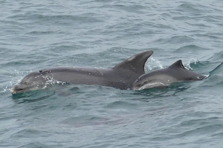 In the past two weeks, there have been two separate sightings of bottlenose dolphins swimming and interacting with a lone harbour porpoise, who seems to have contentedly joined up with them.