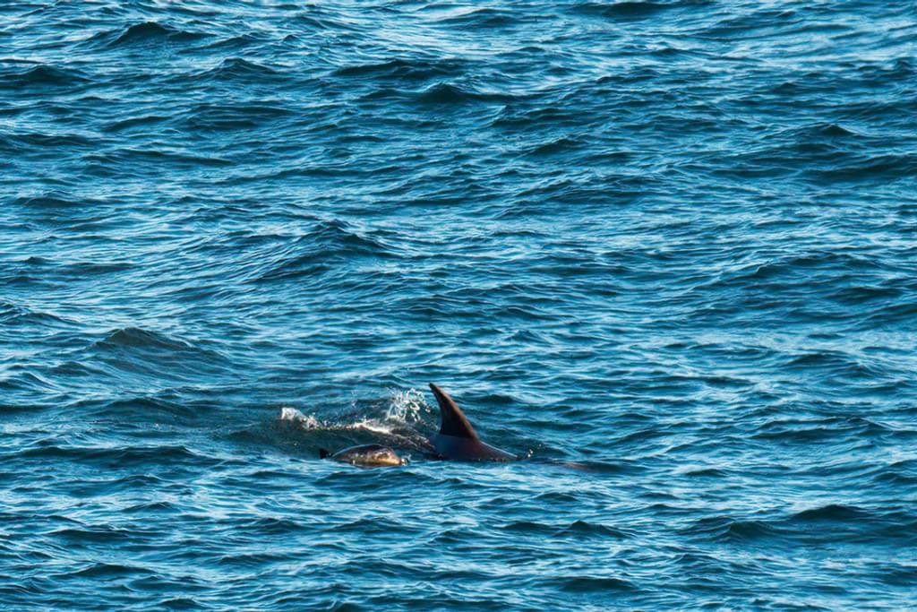 Terry Carne is a longstanding ORCA OceanWatcher and Marine Mammal Surveyor. He was conducting his daily ORCA OceanWatchers survey from shore when he witnessed this very rare pairing in Newquay on March 2nd.
