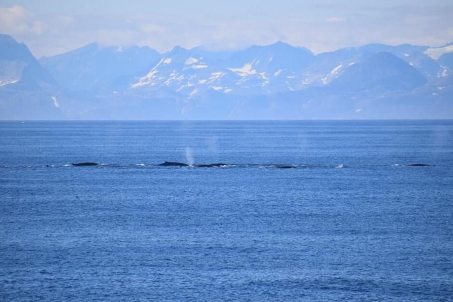 As we reached the southern tip of Greenland on one voyage, we were greeted by a stunning sight. Hundreds of baleen whales, predominantly fin whales, in pods of twenty-plus were feeding. We passed line after line of blows, and they just didn’t seem to stop coming. As we left one group, another would appear on the horizon. This is a mark of the incredible recovery fin whales have made since commercial whaling was banned in 1986.