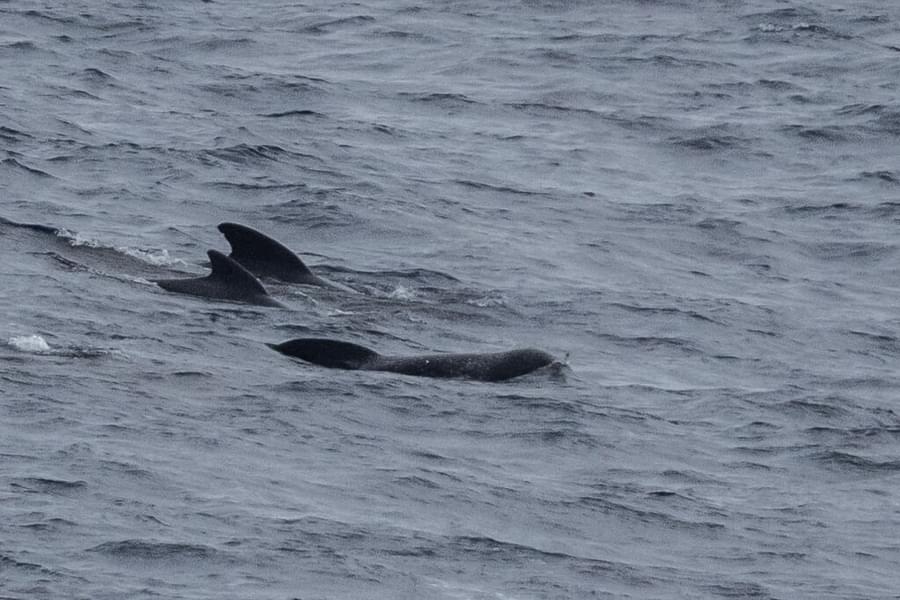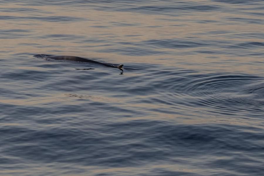 Our viewing started at dawn on deck 10 as we entered the lower third of the Bay of Biscay - and the sea was as flat as a pancake - perfect whale watching conditions! As the sun rose, our first common dolphins approached the Pont-Aven - an amazing start to the day. We were treated to some distant blows from large baleen whales. However the most emotional sighting was of three very close fin whales passing down the side of the ship, including a calf. The next excitement came with a pod of 8 passing pilot whales. Seabirds were still evident with Bulwer's petrel and a Scopoli's shearwater being noted, true rarities.