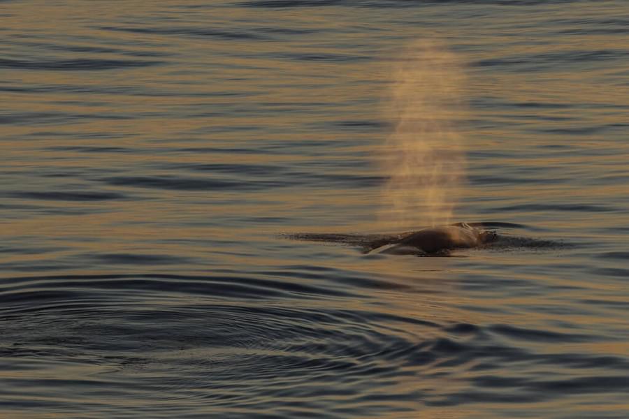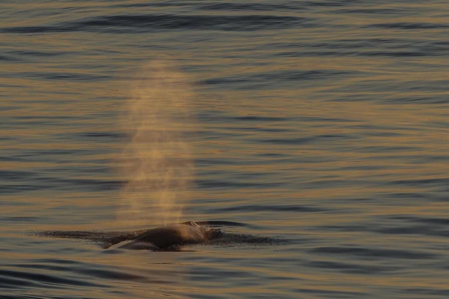 Shortly after leaving Santander, a black kite flew over the ship and a pod of striped dolphins passed by. We were getting the occasional views of small pods of dolphins and two immense sunfish as we approached the south shelf of the canyons. As the sun was about to set, it became rather busy. At first we passed a pod of pilot whales then we had two distant blows near the horizon of two probable fin whales. However another blow between them, more like a fire hydrant, shot up high into the air.....a (possible) blue whale! A rare sighting in the bay (this sighting is recorded as an 'unidentified whale' on the map, as we did not quite get a glimpse of any of the other key identification features for a 100% positive identification). While this was going on, on the other side of the ship, six Cuvier's beaked whales popped up close to the ship. There was a lot of happy people (guides included!).