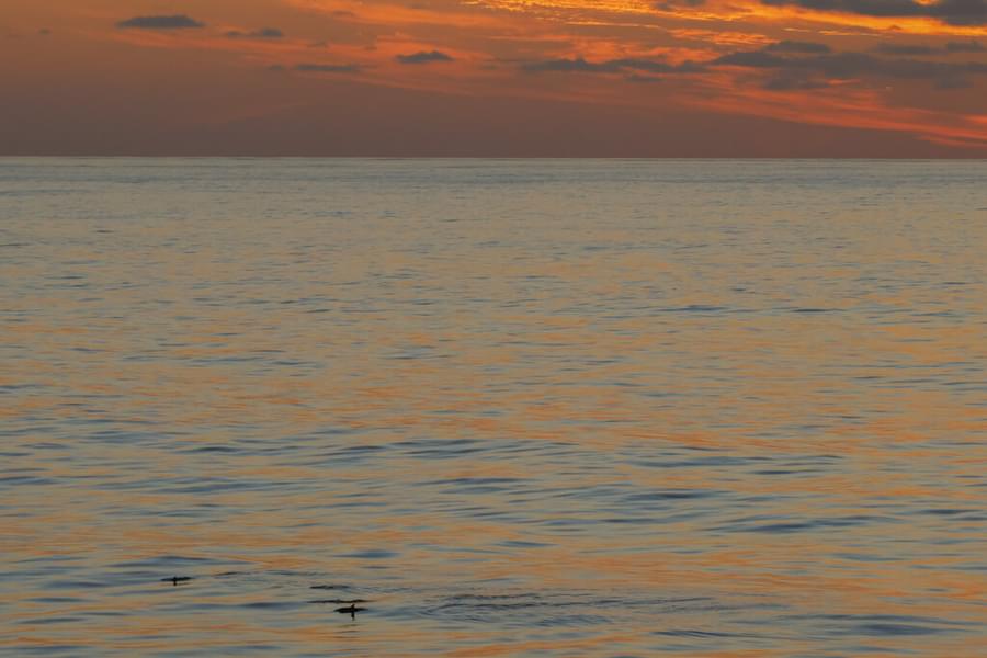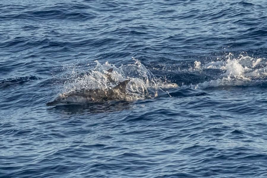 Then straight for a deck watch until sunset. Low pressures from the Atlantic prior to sailing provided a bonus of many seabirds. Large numbers of Manx shearwaters, then Cory's shearwaters and great shearwaters surrounded the ship. However, to all the birder's delight - a Wilson's petrel was seen, plus a Balearic shearwater. Our first cetacean sightings of the trip were bottlenose dolphins and common dolphins, recorded in small groups swimming and feeding in association with shoals of tuna.