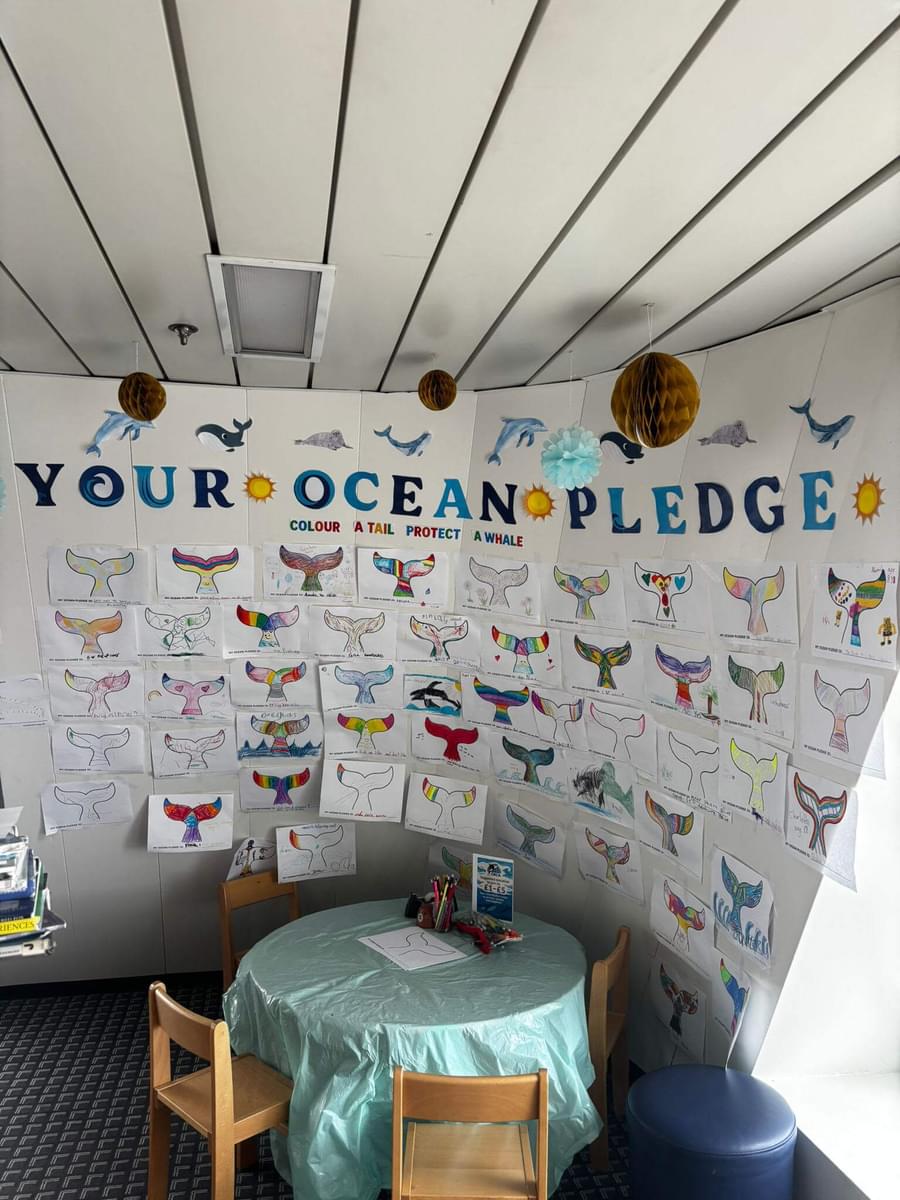 Our Ocean Pledge Wall became a living tapestry of hope and determination. From the scribbles of a two-year-old to the promises of a seventy-something ocean lover, each pledge was a reminder of how deeply people care. Together, these commitments created something beautiful: a shared purpose, a spark of camaraderie, and a collective belief that we can make a difference when we act together. Seeing the determination of teenagers dreaming of becoming marine biologists, or the wonder in a child’s eyes as they learn about whales and dolphins, were some of our greatest joys as Ocean Conservationists.
