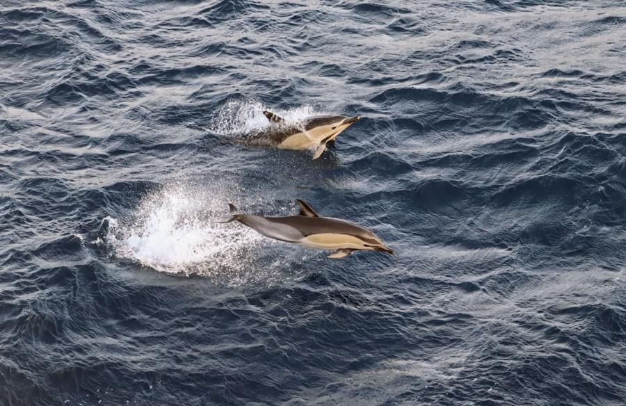 Escaping the chilly January weather of the UK, around 1,000 passengers, including two Ocean Conservationists, set sail on a 28-day adventure across the Atlantic Ocean to the sunny Caribbean. The days at sea were filled with anticipation for the marine mammals we could encounter, and one of the highlights was definitely spotting dolphins. As we approached Praia de Vitória in the Azores, we were greeted by a pod of around 60 short-beaked common dolphins. They appeared seemingly out of nowhere, approaching the ship and then gracefully porpoising out of the water, weaving through the ship's wake, displaying their remarkable agility and intelligence. Dolphins have evolved to thrive in our world's oceans, and their highly social behaviour plays a vital role in how they interact with their environment and each other.
