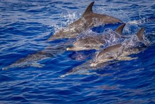 Hourglass dolphins are often seen swimming fast at the surface with long low leaps, often with just the dorsal fin breaking the surface. Their fast swimming creates a lot of spray and frequently they approach boats and bow-ride. They are usually seen in small pods of up to 12 individuals.