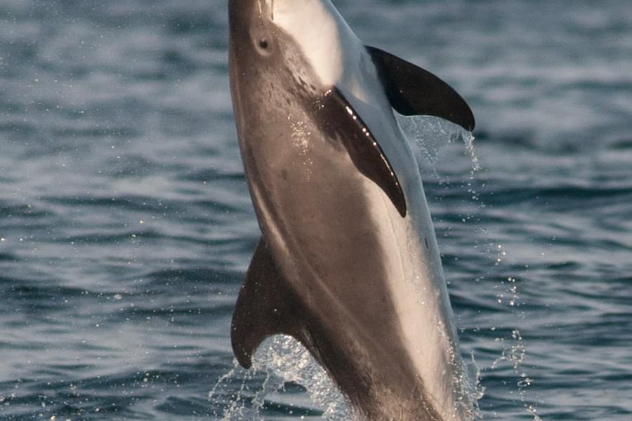 White-beaked dolphins are relatively large robust dolphins with a distinct colouring. They have a small obvious beak, but it’s not always white. They have white underbellies as far back as the tailstock, and a pale grey saddle patch behind the tall dorsal fin. Their most useful identification feature is the white and pale grey markings on their flanks (sides), the most distinctive being a pale grey area theat extends from the dorsal fin towards the tail stock, giving the impression of a 'saddle patch'.
