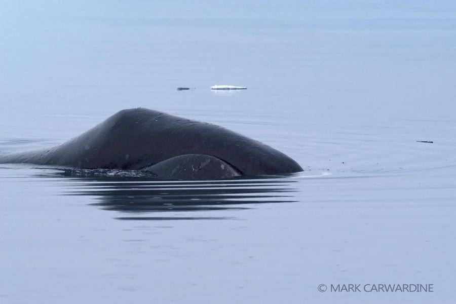The bowhead whale is named for the shape of its enormous and distinctive bow-shaped skull. They are large stocky whales and have a layer of blubber up to 42cm thick and the longest baleen of any whale, with plates reaching 5m in length. When lying on the surface, its profile resembles that of the loch ness monster, with two humps appearing above the surface of the water. The species is also renowned for being one of the longest-lived on earth, with a record at 211 years old.