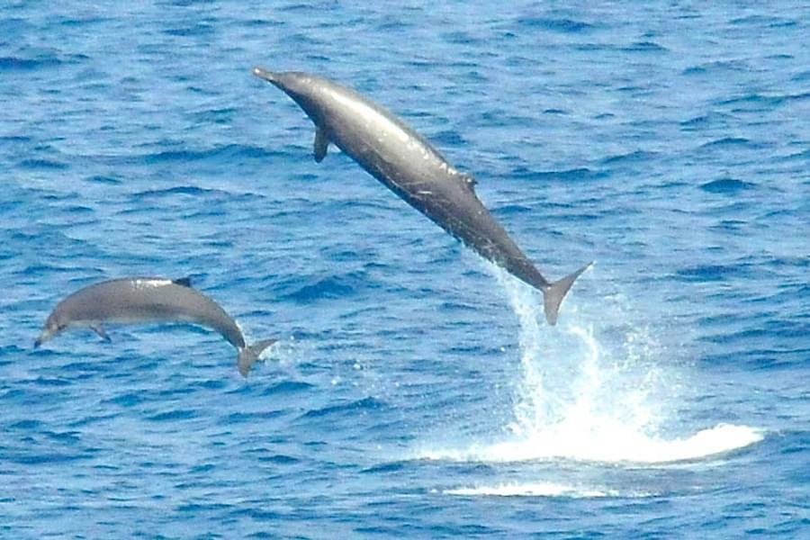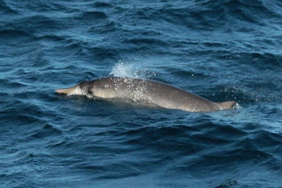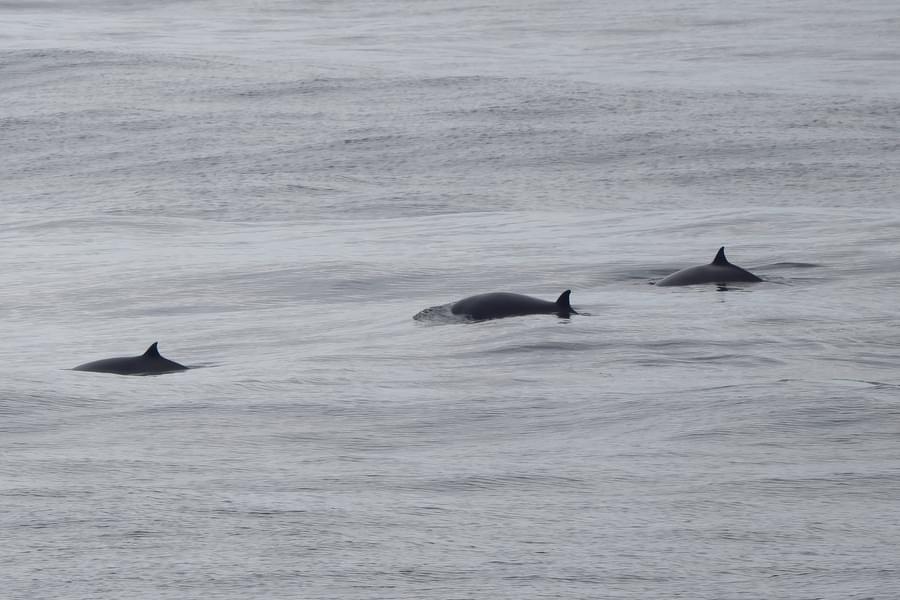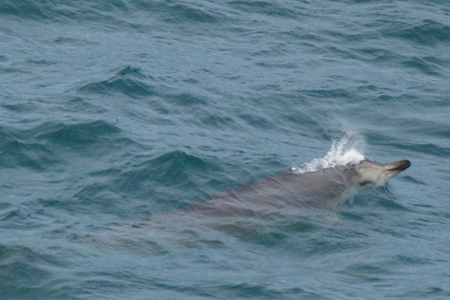 Generally, Sowerby's beaked whales are very shy animals, so little is known about their behaviours. Most of the information we have about this species s is taken from strandings, as they are not commonly seen at sea. When seen, they are in groups of 1-10 individuals, usually 6 - 8, compromised of stable family groups. When surfacing, the long beak and melon appear first, with the back appearing whilst the head is still visible. The curved dorsal fin becomes visible as the animals smoothly roll through the water.